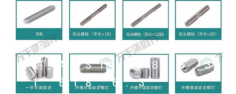1.機(jī)螺釘 2.自攻螺釘 3.鉆尾螺釘 4.墻板釘 5.纖維板釘 6.木螺釘7.六角木螺釘 8.不脫出螺釘 9.組合螺釘 10.微型螺釘 11.家具螺釘 12.電子螺釘 13.鏈帶螺釘頭型 :1.六角頭(hexagon head)2.六角頭法蘭面(hexagon head with flange)3.方頭(square head)4.T形頭T head (hammer head5.